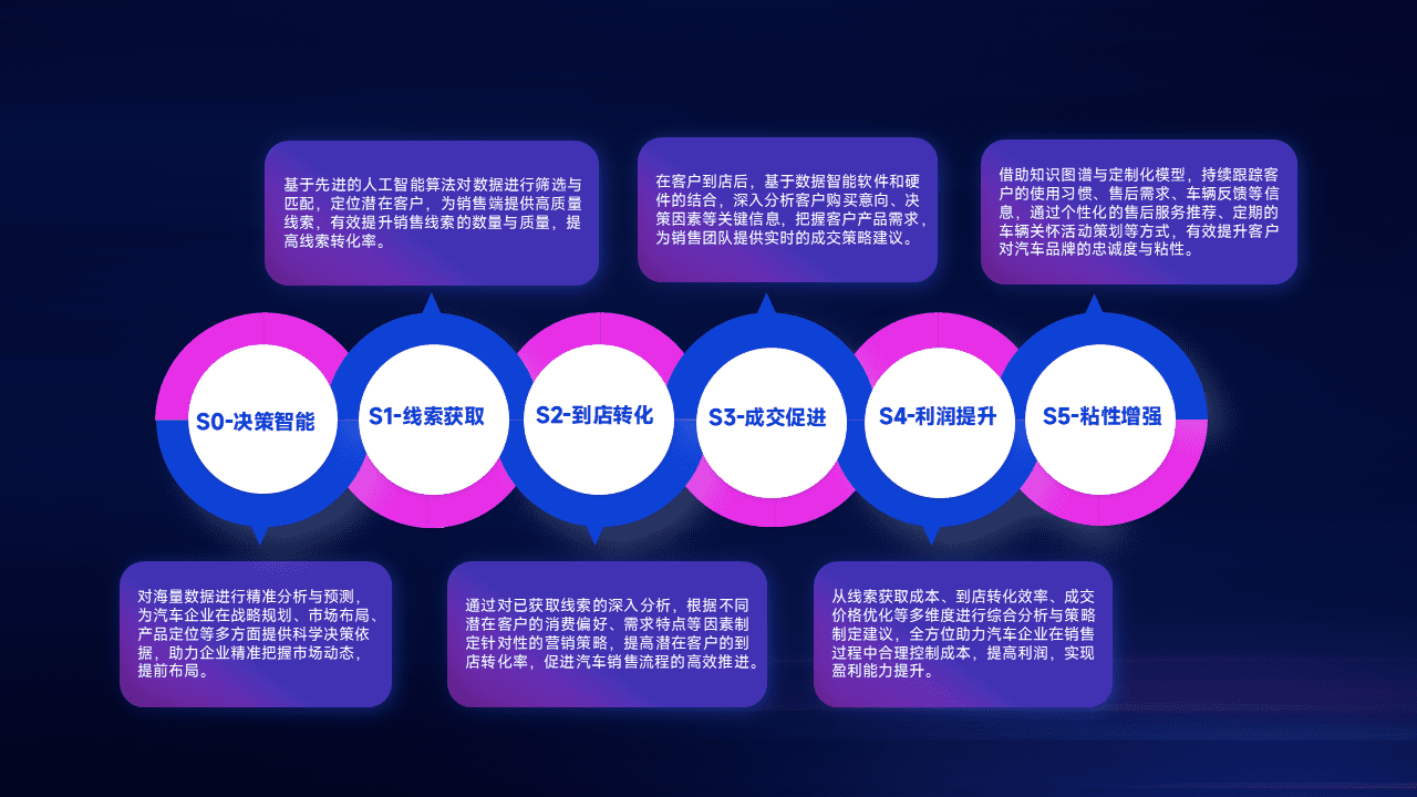 通过拓宽潜在客户来源、、、、优化线索分配并提高到店转化率,,,,以增强销售效率。。同时,,,,利用线索数据不断优化分析模型,,,有效提升转化率,,,扩大营销影响力。。。